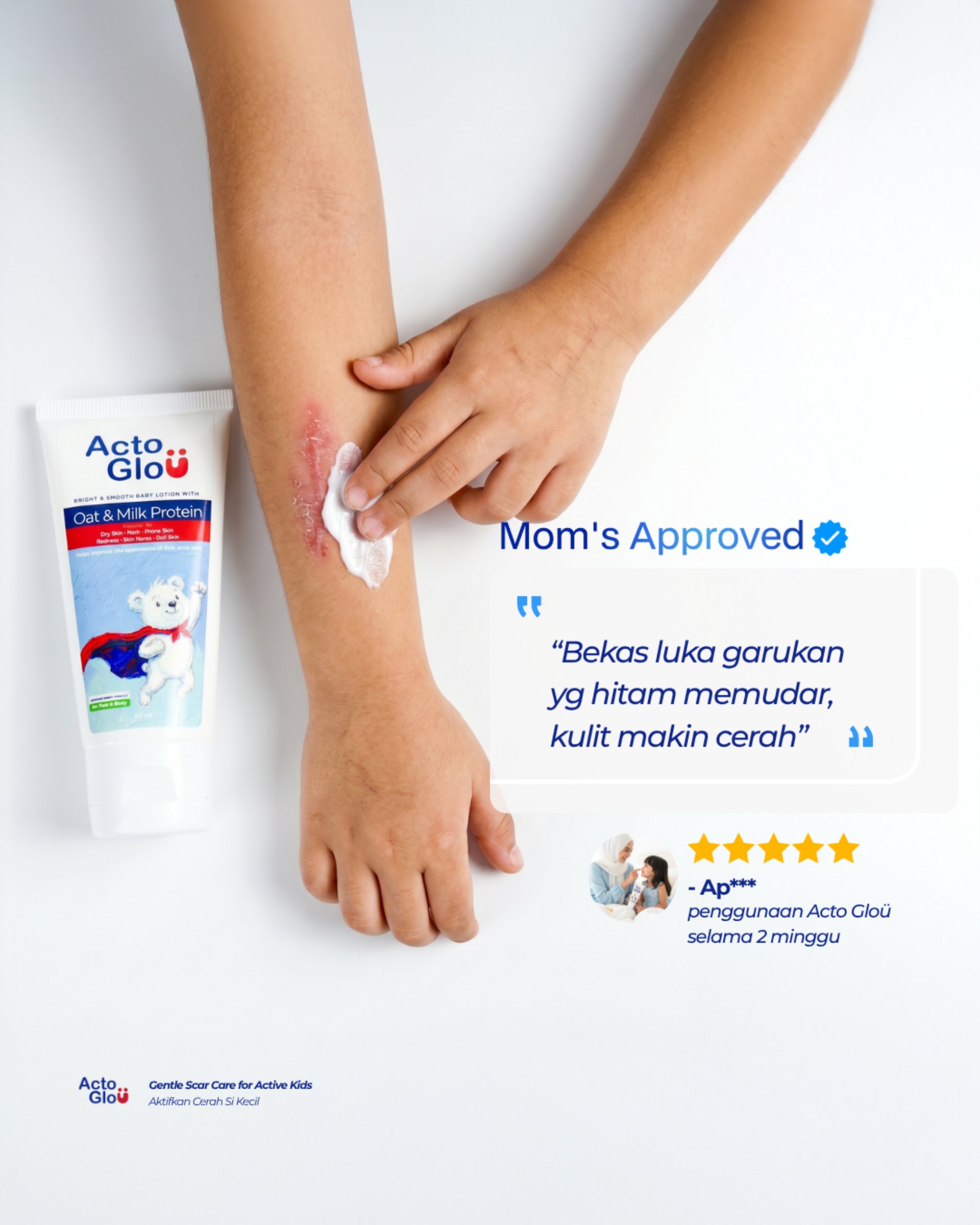 Ibu puas dengan Acto Glou & buktikan bekas luka anak memudar, kulit makin lembut & cerah